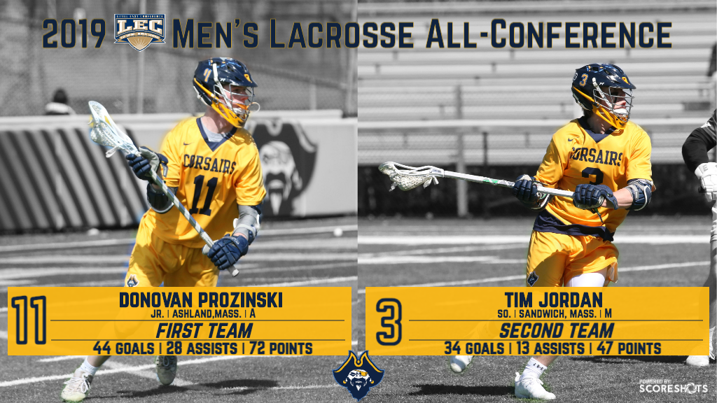 Wenzel added an assist to finish with eight points in the win for the Corsairs, who received a goal and two assists from senior Mike Rizzo (Bridgewater, Mass.) along with a marker and helper each from Prozinski and juniors Sawyer Gibbons (Sandwich, Mass.) & Tim Jordan (Sandwich, Mass.). Sophomore Kevin Swenson (Ipswich, Mass.) also tallied for the hosts, who received assists off the sticks of sophomore Zak Wirsen (Bourne, Mass.) and freshman Stephen Kolodko (Woburn, Mass.).